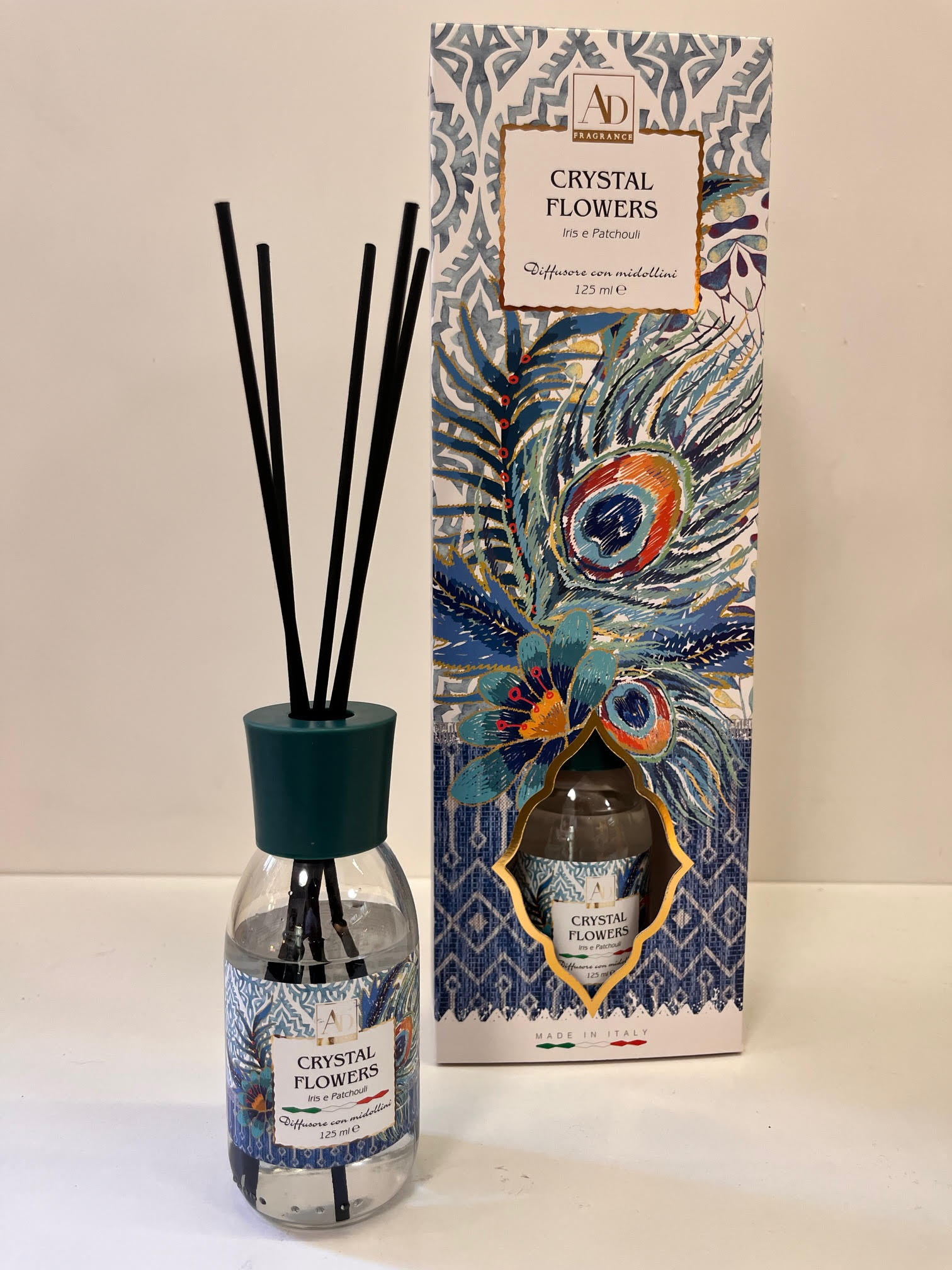 Η συσκευασία, με έντονα μπλε και τιρκουάζ μοτίβα και λεπτομέρεια από παγώνι, εκπέμπει φινέτσα και μοναδικότητα, χαρακτηριστικά γνωρίσματα της Candle Tales.
