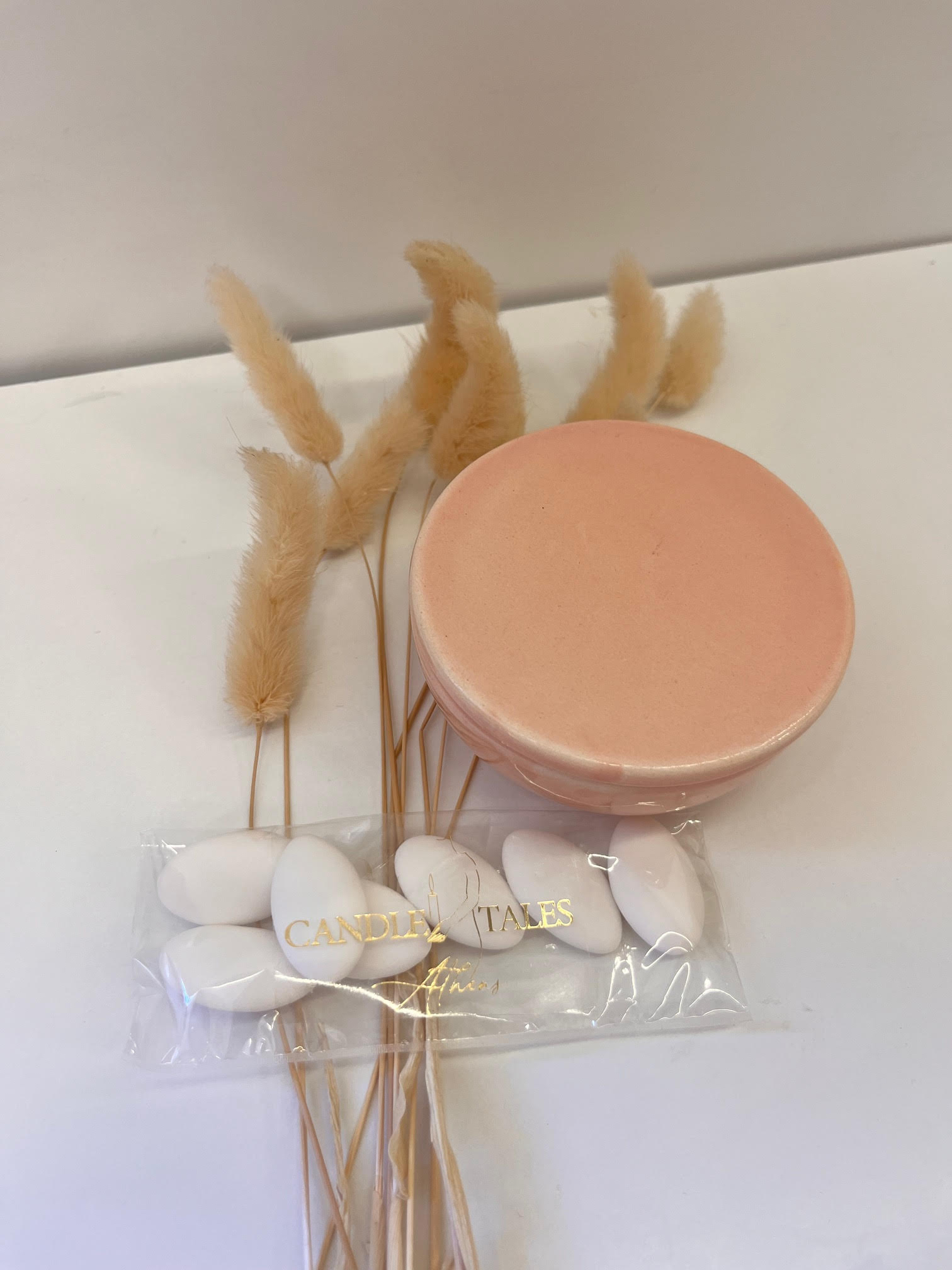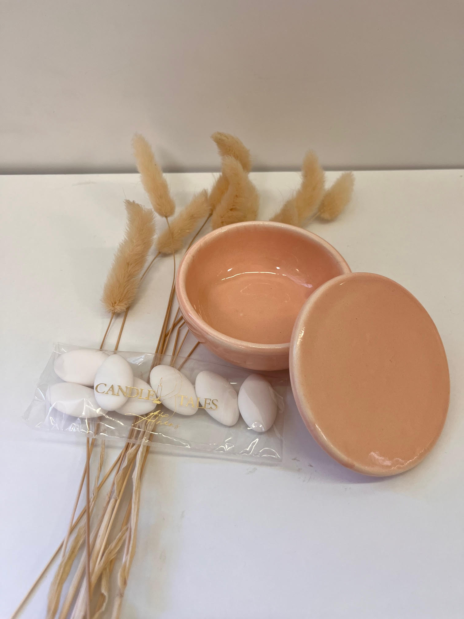 Κάθε μπομπονιέρα περιλαμβάνει χειροποίητο αρωματικό κερί, ντυμένο με υλικά που επιλέγουμε μαζί, και συνοδεύεται από κουφέτα της επιλογής σας.
