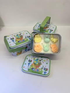 Πασχαλινό κουτάκι γεμάτο από 100% φυτικό κερί σόγιας διακοσμημένο με πασχαλινές παραστάσεις.