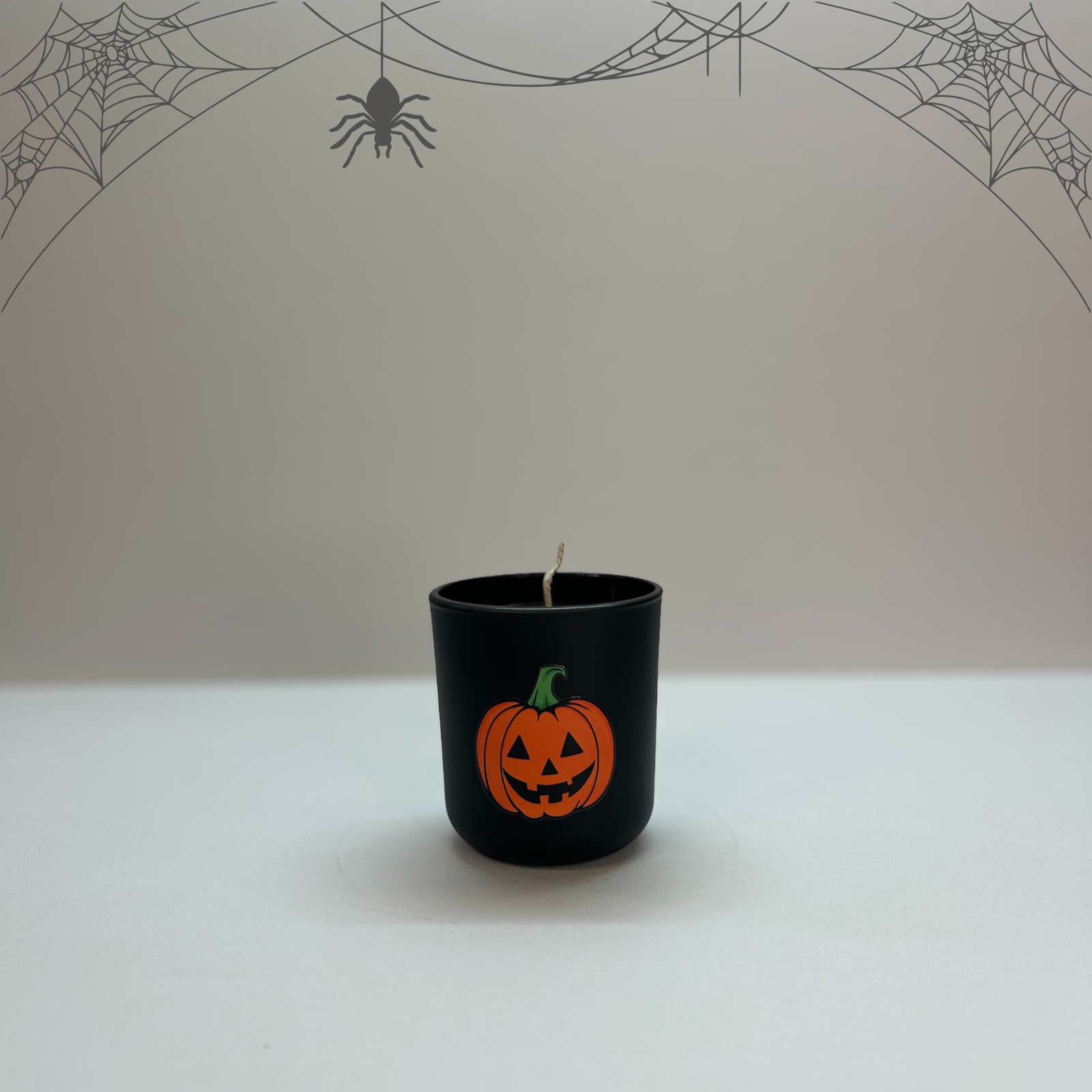 Pumpkin Glow – Χειροποίητο Halloween Κερί Σόγιας σε Μαύρο Γυάλινο Βαζάκι | Candle Tales